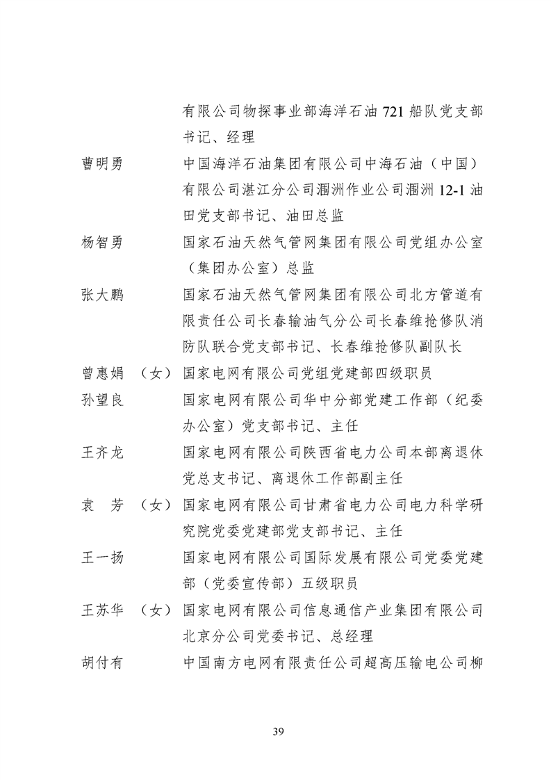 为表彰先进、弘扬正气,激励各级党组织和广大共产党员在把握新发展阶段、贯彻新发展理念、构建新发展格局中奋发有为、建功立业,国资委党委决定,授予邢继等338名共产党员“中央企业优秀共产党员”称号(含追授2名),授予王军艳等205名党务工作者“中央企业优秀党务工作者”称号,授予中国核工业集团有限公司福建福清核电有限公司党委等448个基层党组织“中央企业先进基层党组织”称号。这次表彰的优秀个人和先进集体是中央企业各条战线上的杰出代表,他们的先进事迹和崇高精神充分展示了新时代共产党人的先进性和纯洁性,生动诠释了中央企业共产党员的初心和使命,彰显了国有企业先进精神的无穷伟力。
